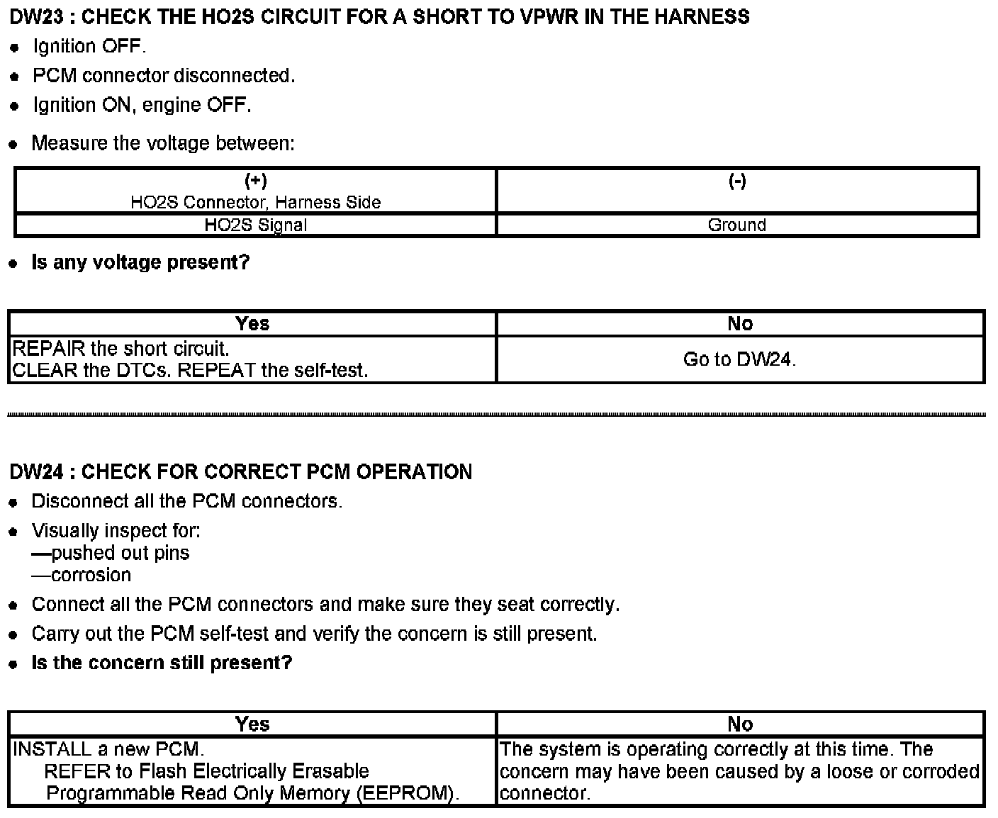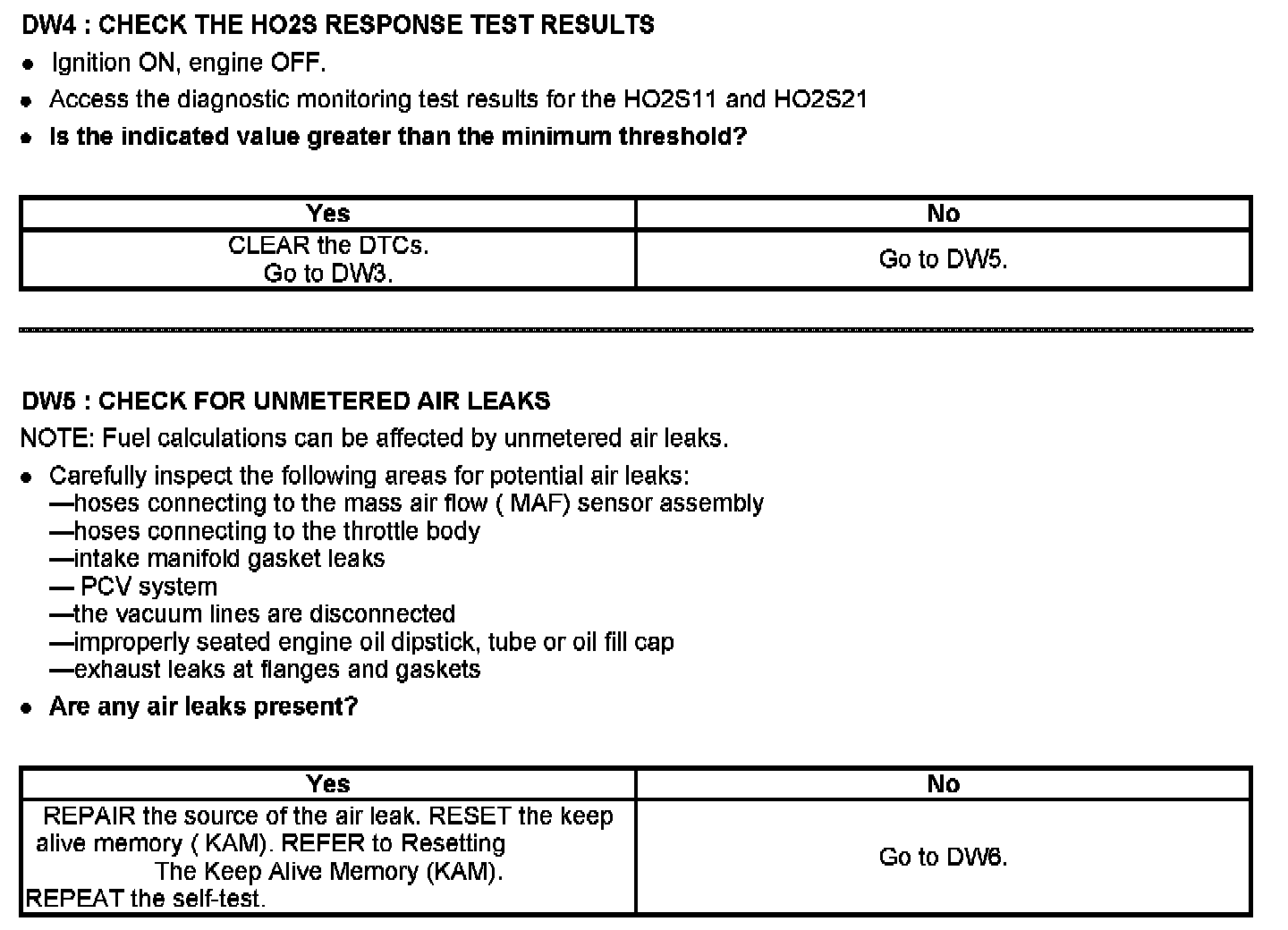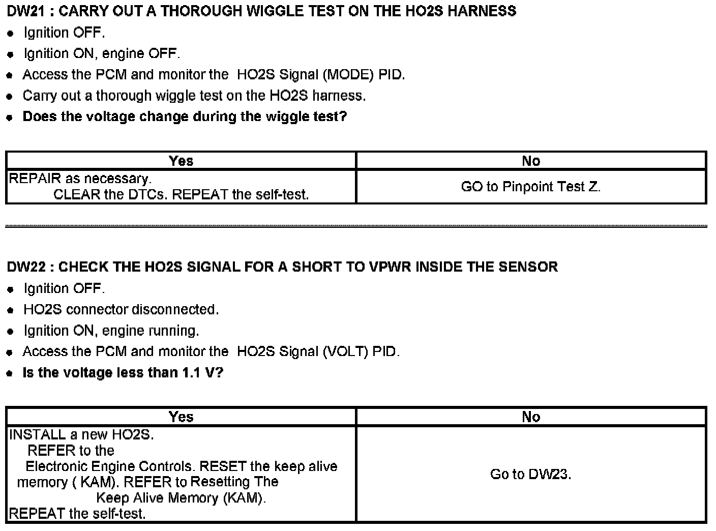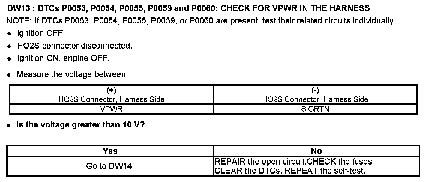 Tests DW: Heated Oxygen Sensor (HO2S)