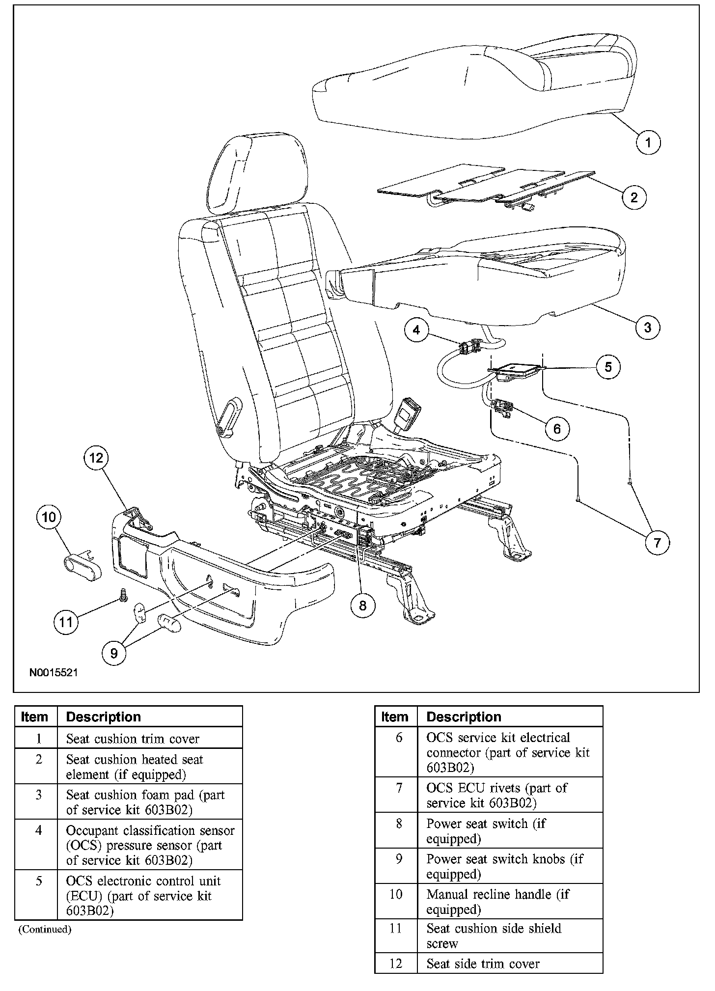 - OCS system components (seat cushion foam pad, bladder with pressure sensor and electronic control unit) are calibrated to each other and are serviced as an assembly. The OCS system components are not to be installed separately. If a new OCS system, OCS system component or seat cushion foam pad are needed, a new OCS system service kit (seat cushion foam pad, bladder with pressure sensor and electronic control unit) must be installed as an assembly.