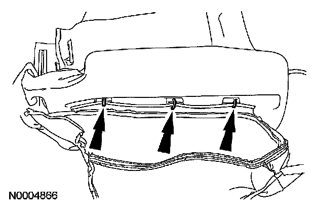 - Inspect the occupant classification sensor assembly, seat cushion frame and support assembly for any foreign objects, before installing the occupant classification sensor assembly to the seat cushion frame. If any foreign objects are found, remove them. Failure to do so may result in personal injury, in the event of an air bag deployment.