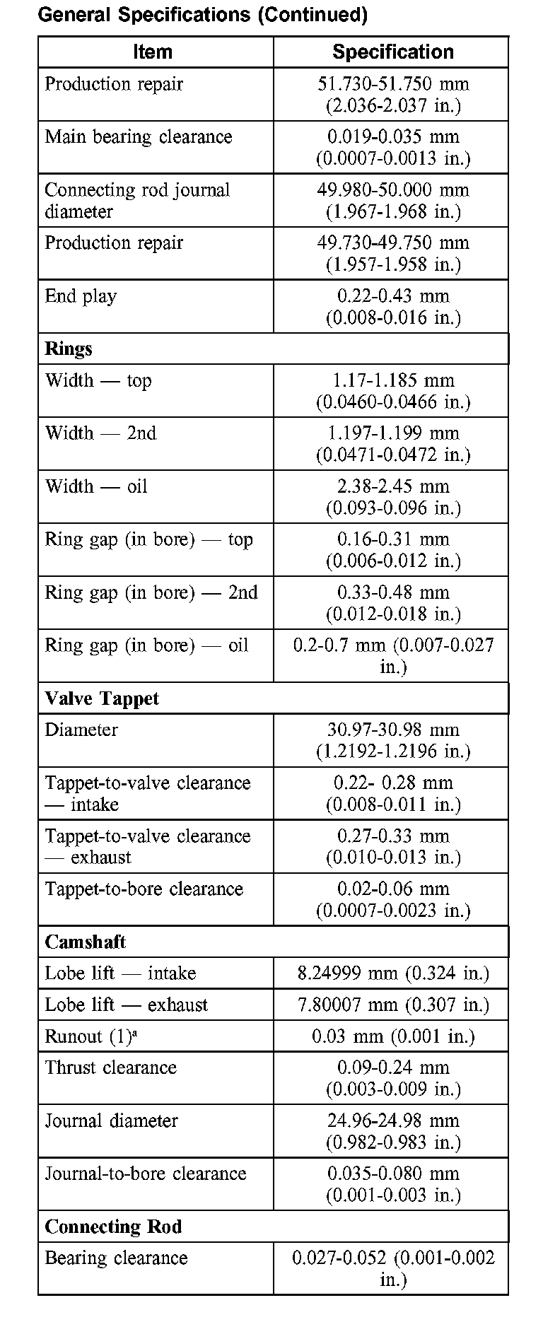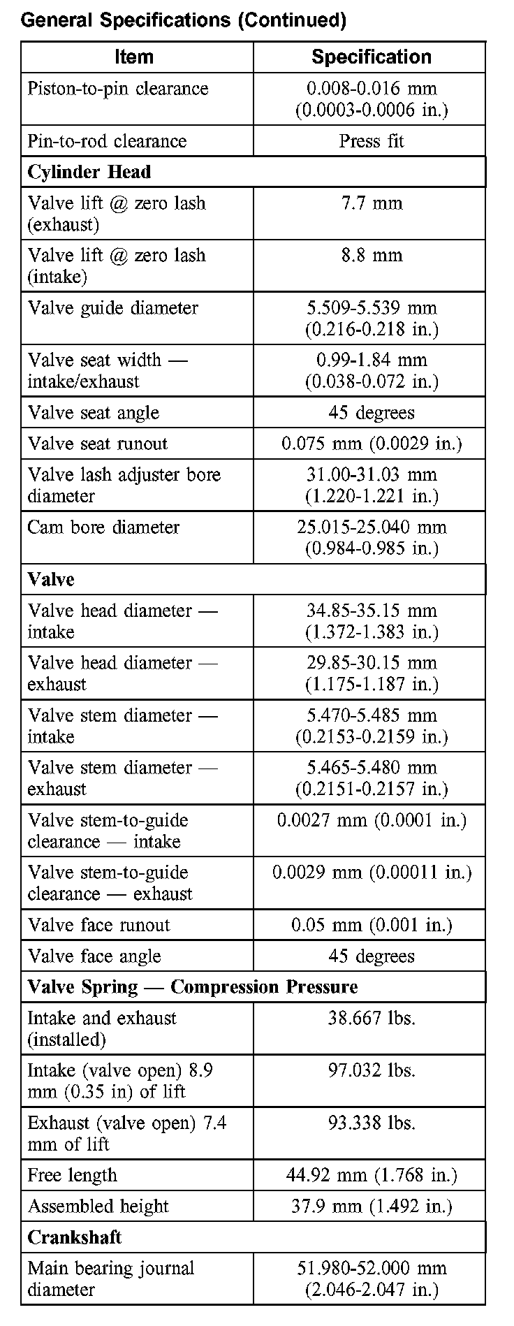 Torque Specifications: