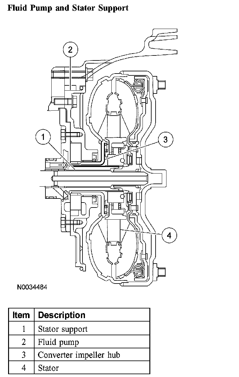 The stator support is part of the fluid pump. Splines on the support locate and hold the converter stator.