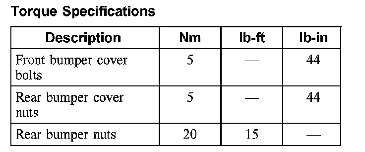 Torque Specifications: