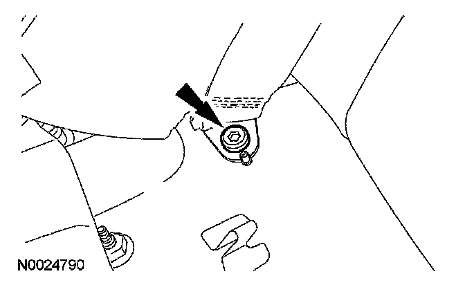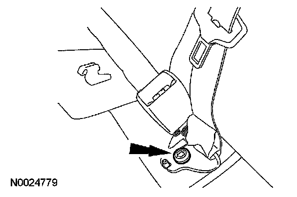 Remove the bolt and detach the safety belt lower anchor (rear center) and safety belt buckle.