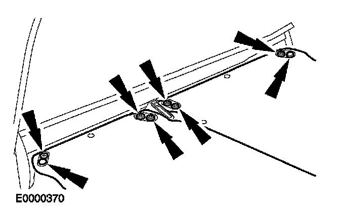 2. CAUTION: Make sure a webbing retainer is fitted at least 200 mm (7.87 in) towards the safety belt retractor from the webbing stop.