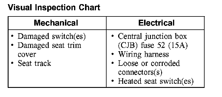INSPECTION AND VERIFICATION1. Verify the customer concern by operating the manual seat assembly or heated seat system.