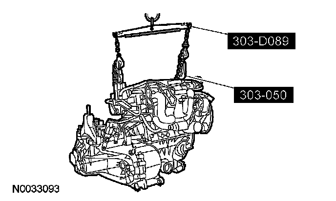 4. Using the special tools, raise the engine and transaxle assembly onto the lift table.