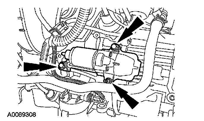 17. Install the starter motor and the 3 bolts.