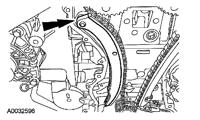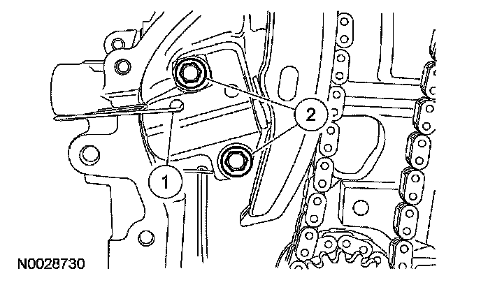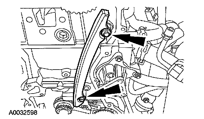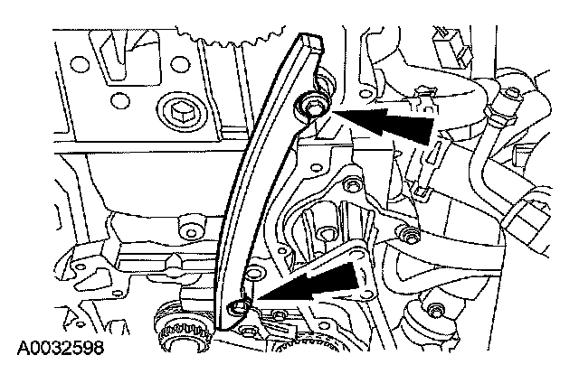 5. Remove the bolts and the LH timing chain guide.