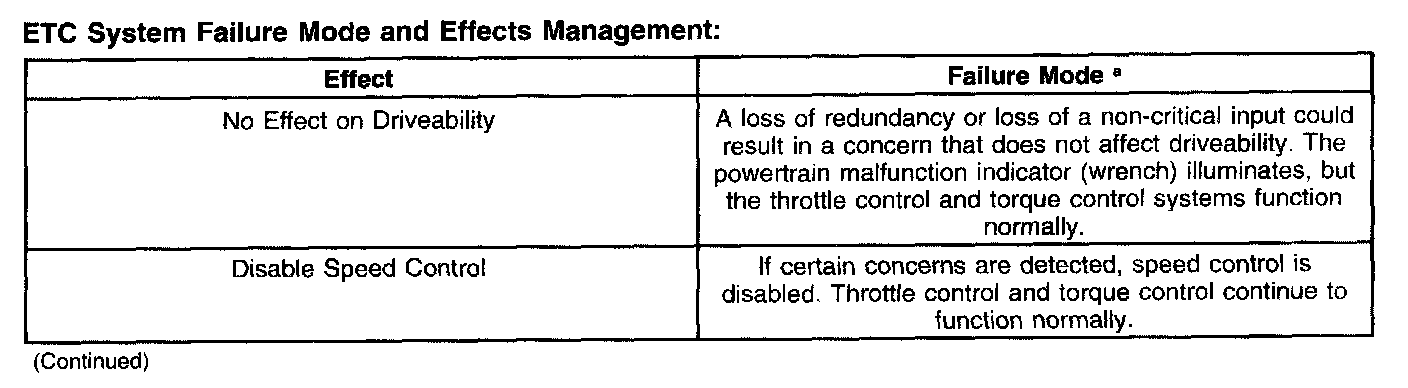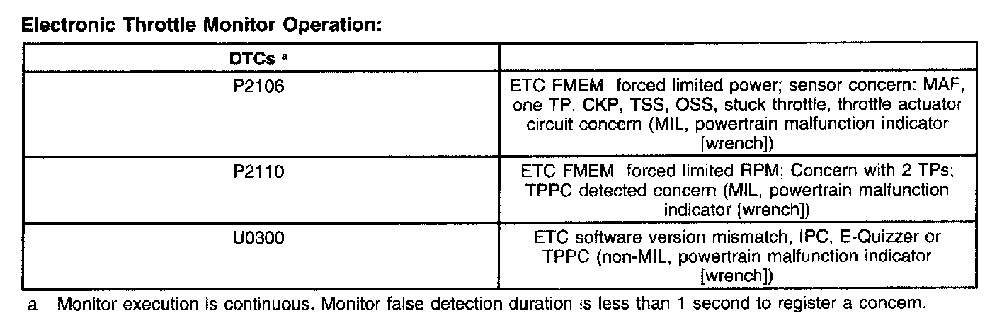 It should be noted that the ETC system illuminates a powertrain malfunction indicator (wrench) on the instrument cluster when a concern is present. Concerns are accompanied by diagnostic trouble codes (DTCs) and may also illuminate the malfunction indicator lamp (MIL).