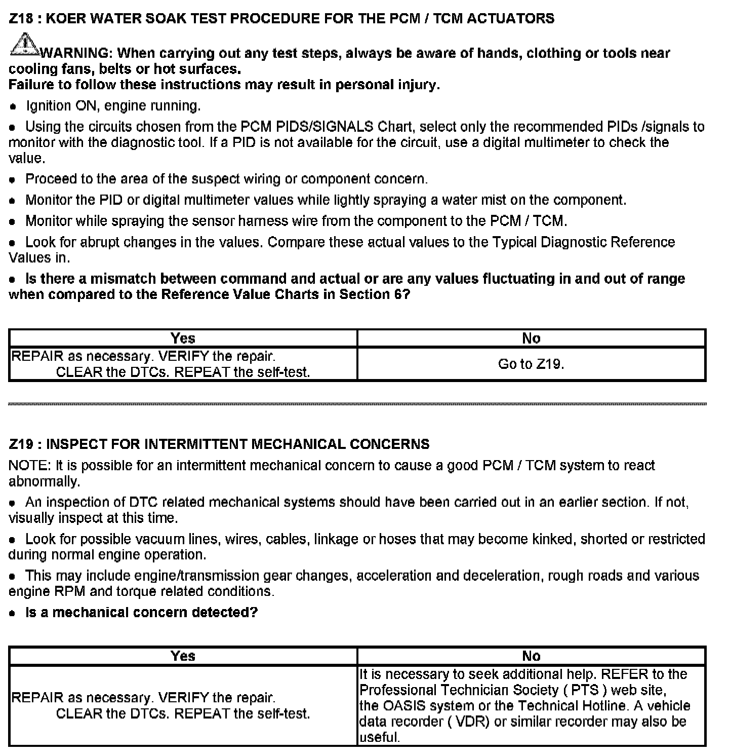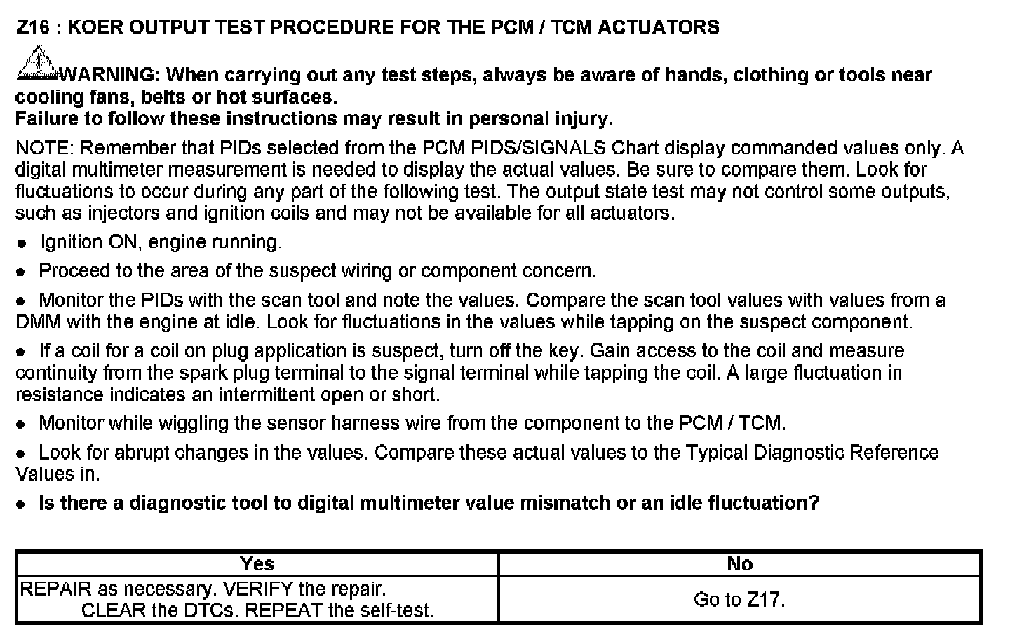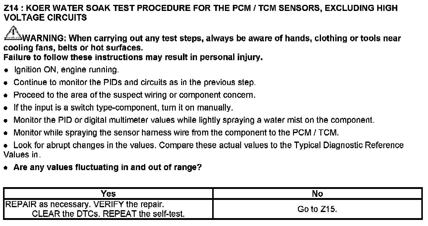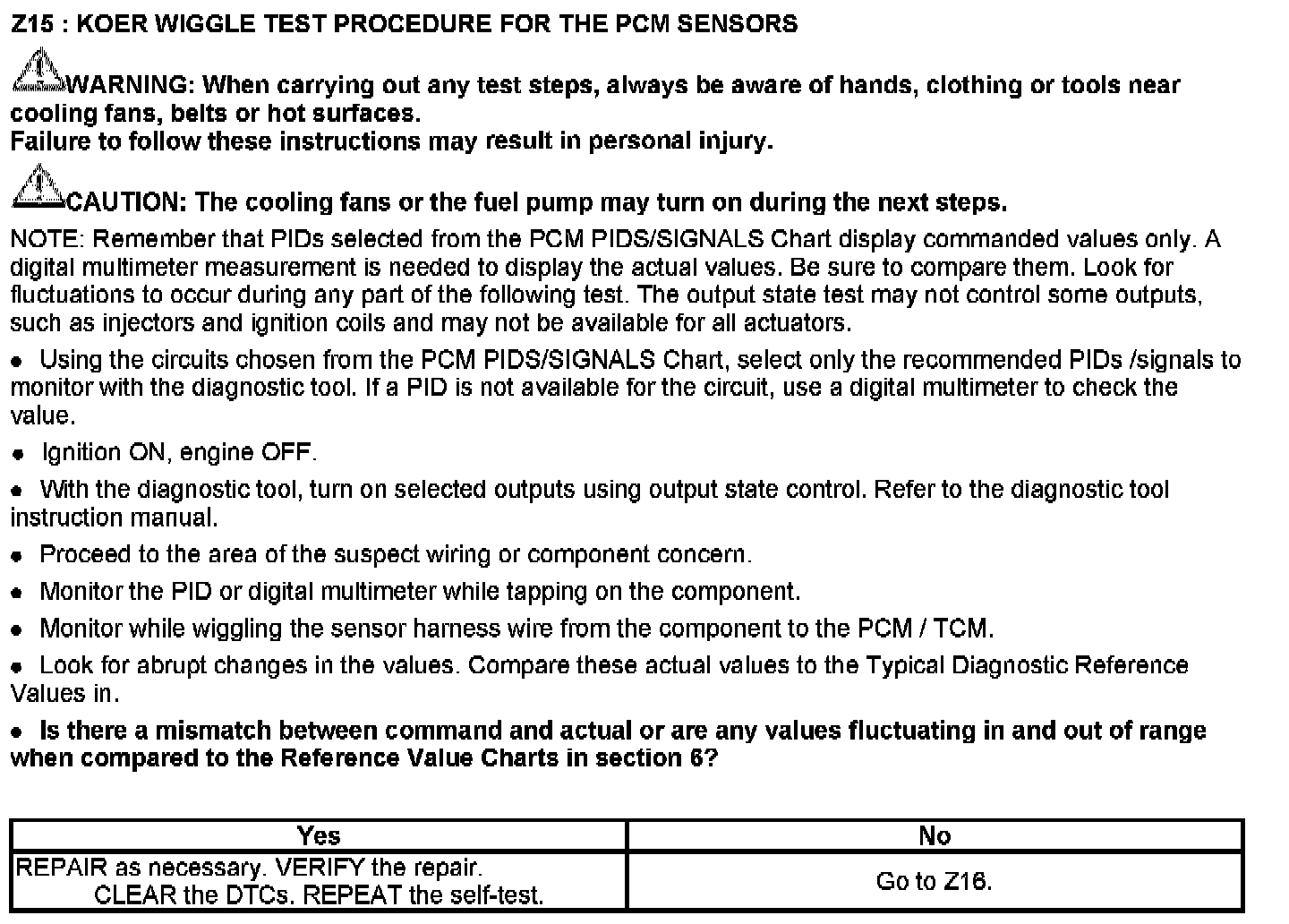This chart is used to determine which test to run for the suspect circuit. PIDs corresponding to each circuit are listed. Some circuits do not have an associated PID or the PID may not be available and has to be measured with a digital multimeter (DMM). If the vehicle has a coil pack system with a no start condition carry out the ignition test.