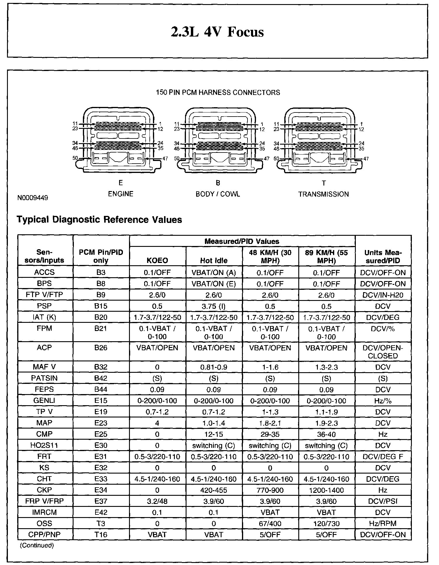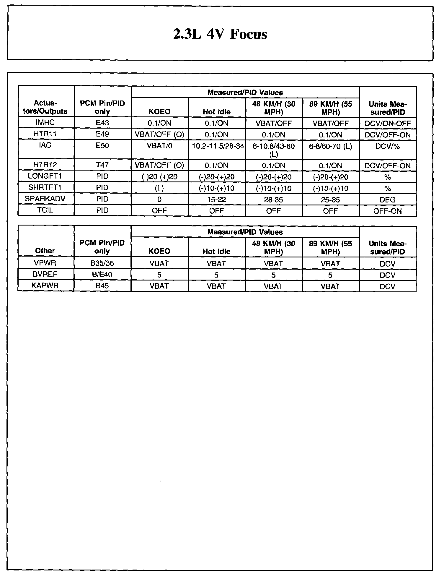 The Typical Diagnostic Reference Value Charts do not display fault parameter identifications (PIDs). These are PIDs which indicate a hard fault with the circuit. They display a value of YES or NO and are PIDs ending with the letter F.