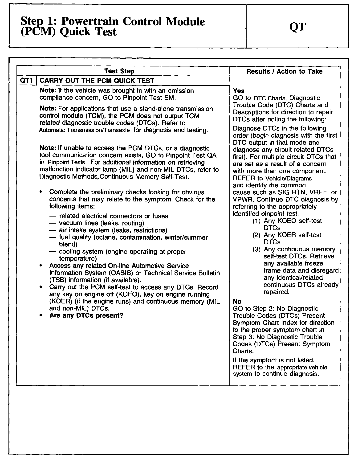 QT Step 1: Powertrain Control Module (PCM) Quick Test