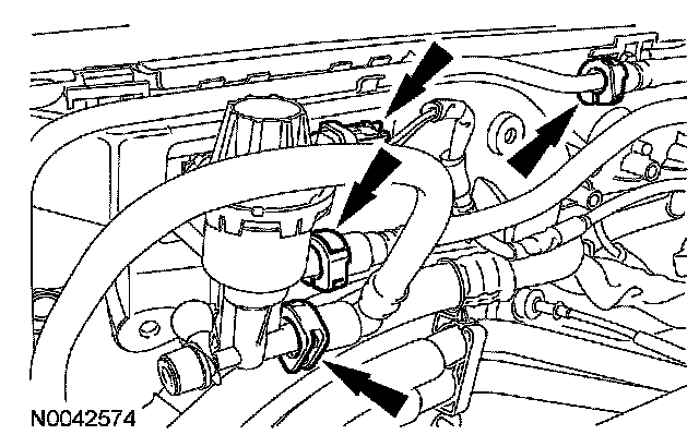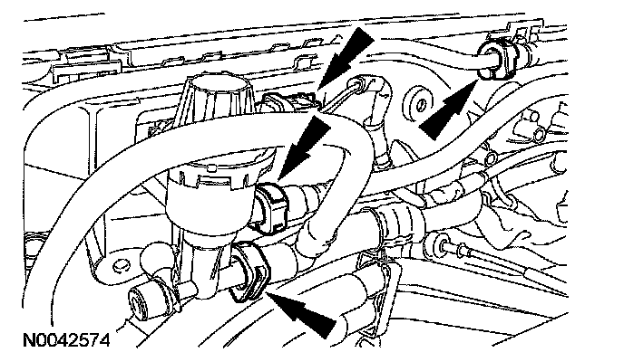 10. Disconnect the fuel tubes and the evaporative emission (EVAP) canister purge valve electrical connector.