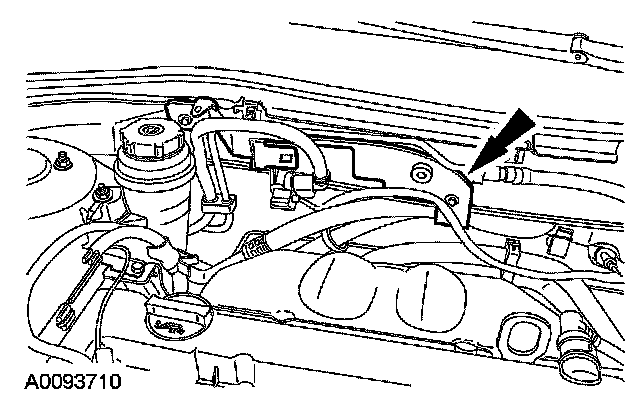 12. Remove the EVAP canister purge valve bracket bolts and position the EVAP canister purge valve and bracket aside.