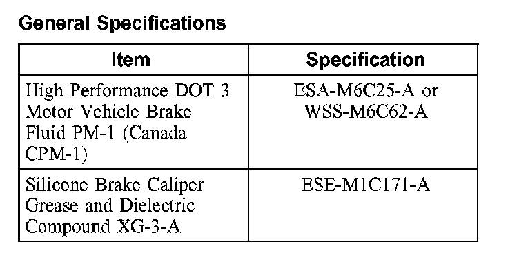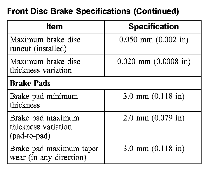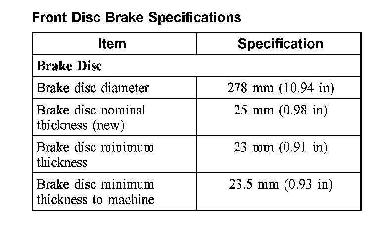 Front Disc Brake Specifications: