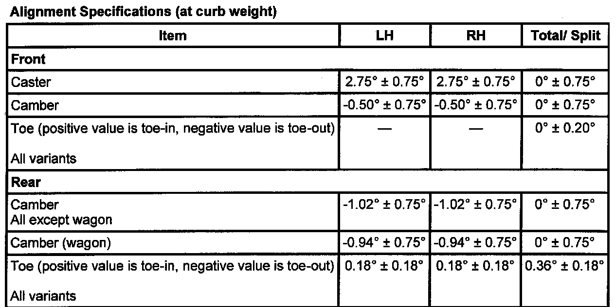 Wheel Alignment Specifications