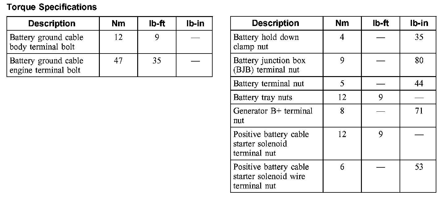 Torque Specifications: