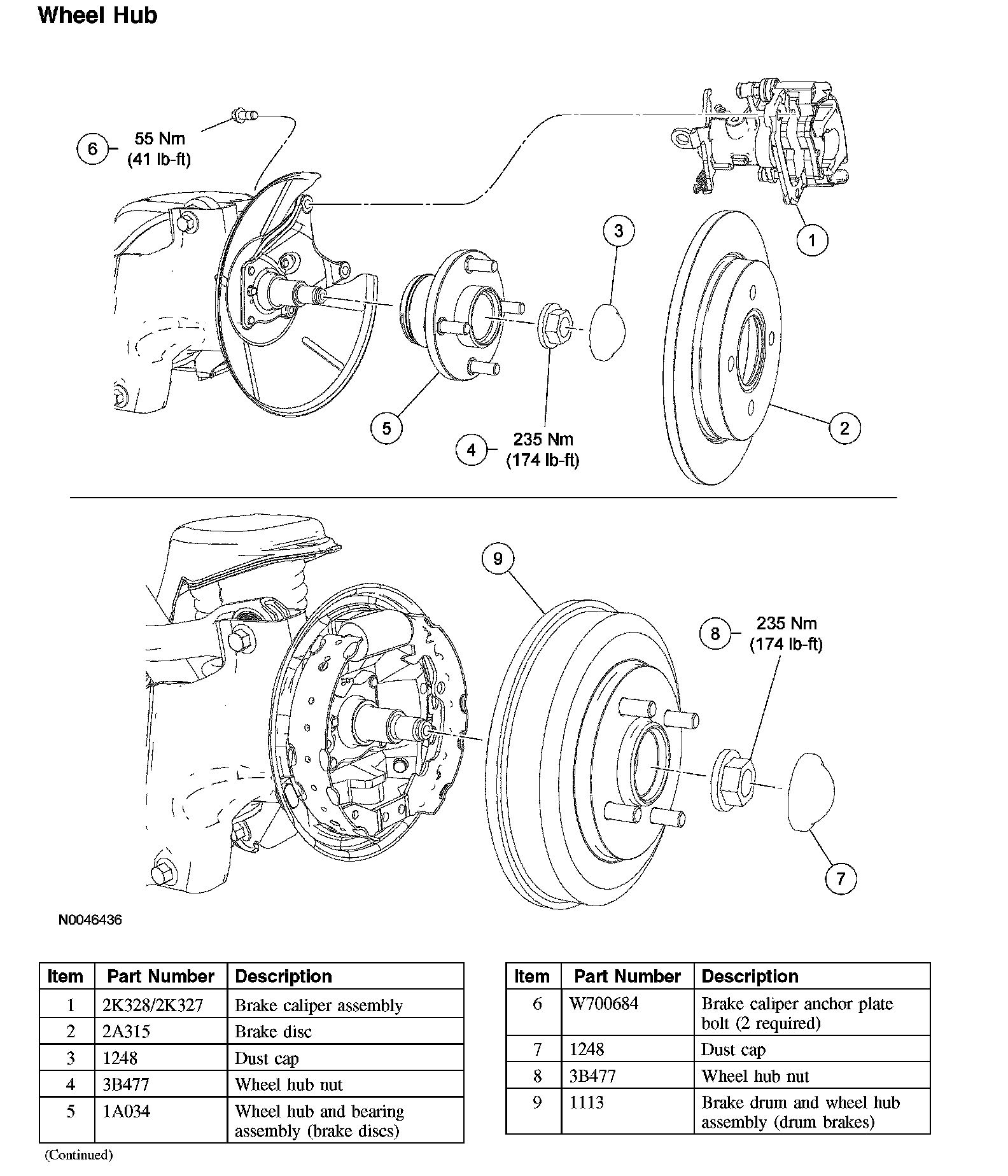 2. CAUTION: Rotate the brake drum 10 times in the opposite direction when tightening the wheel hub nut to prevent damage to the bearing.