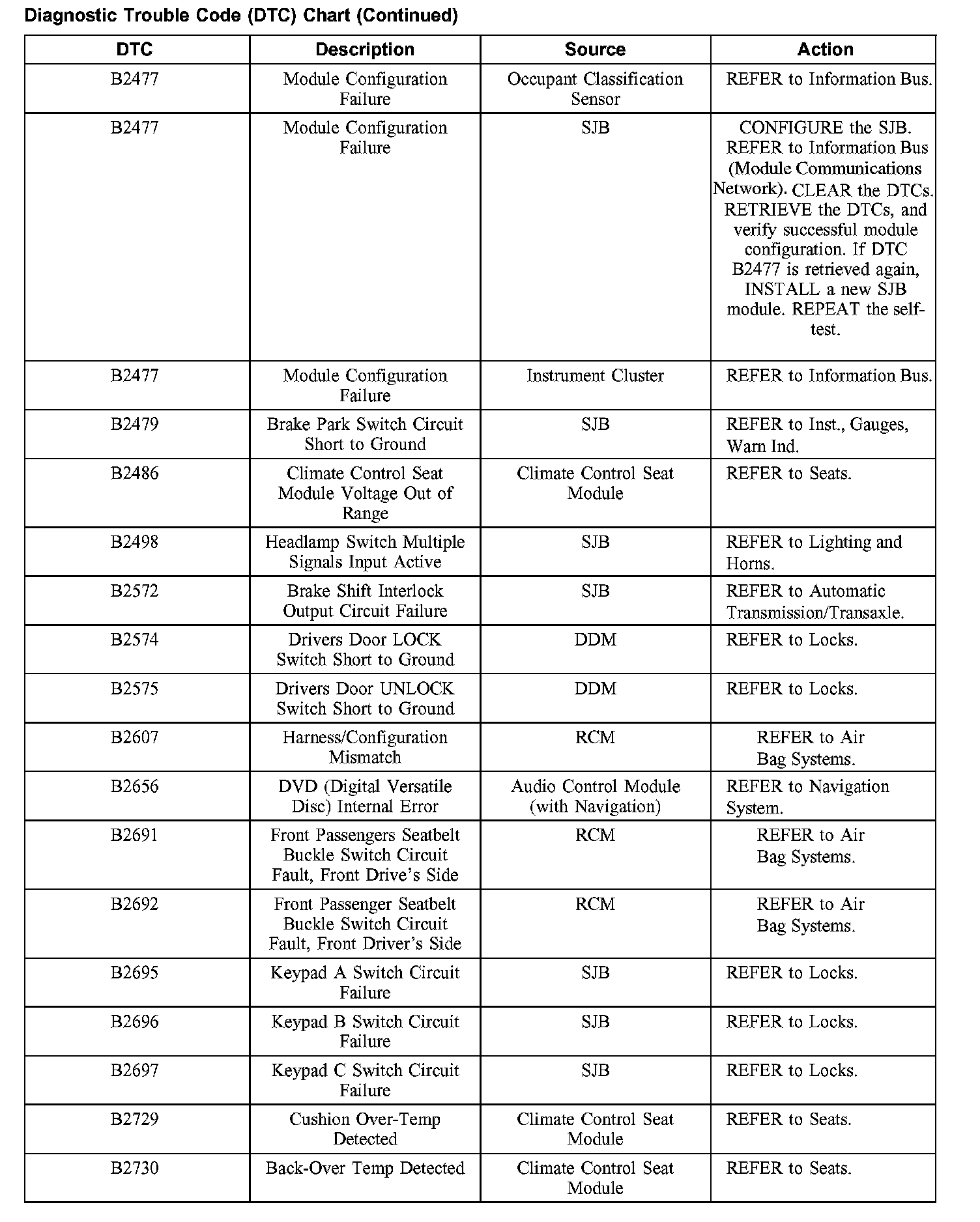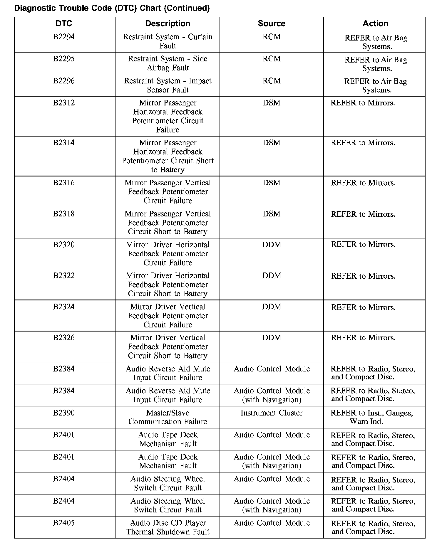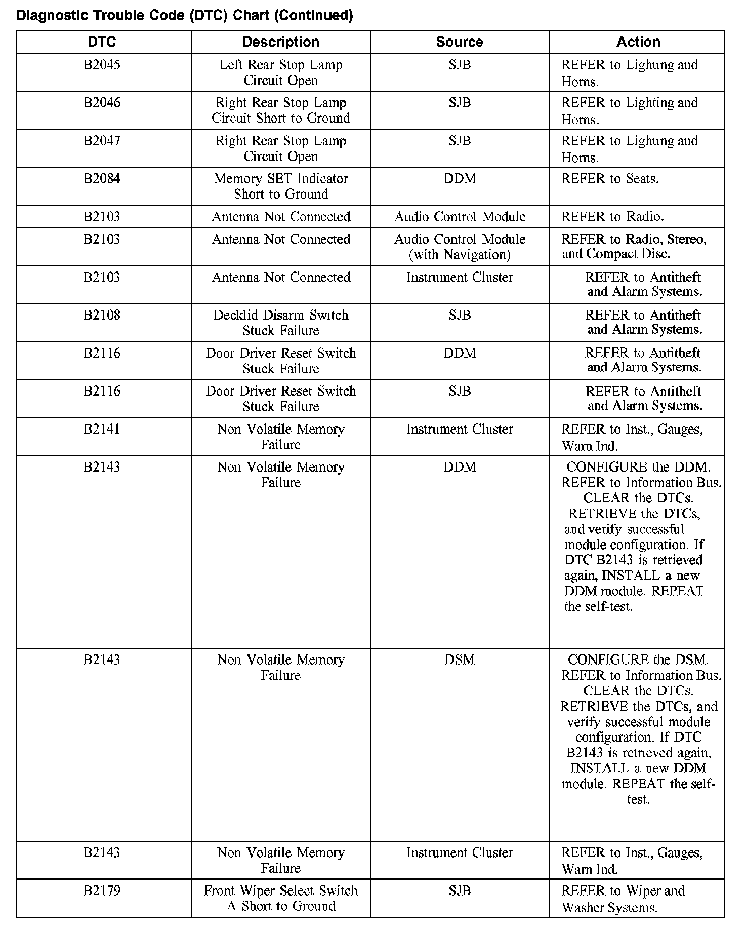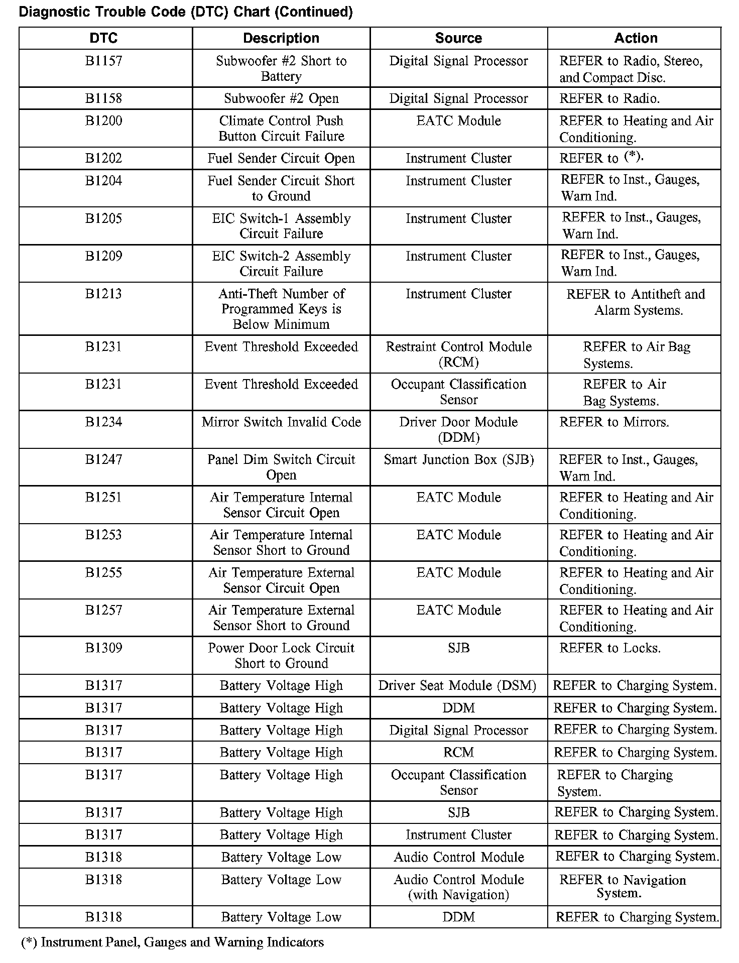 DIAGNOSTIC TROUBLE CODE (DTC) CHARTB1003-B1156:
