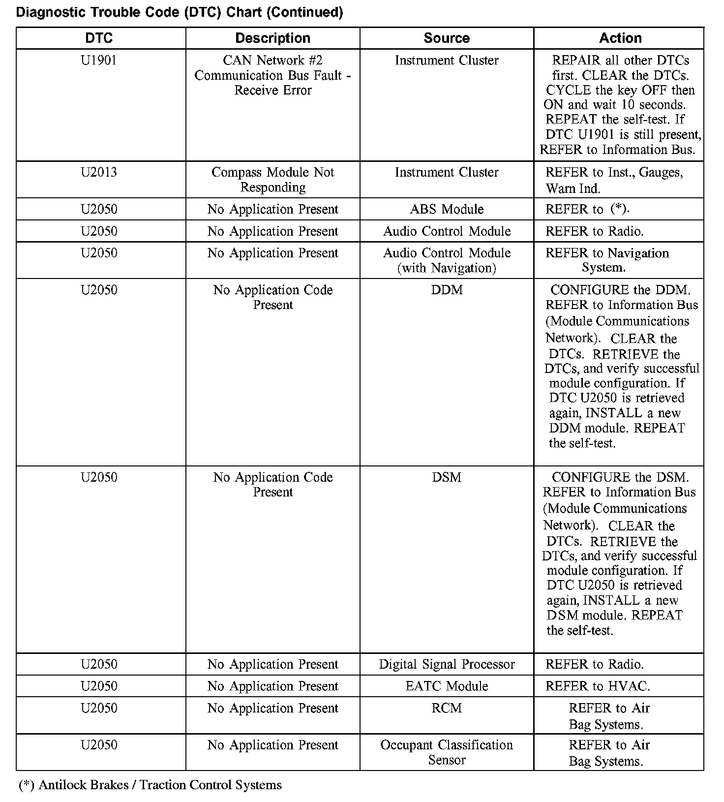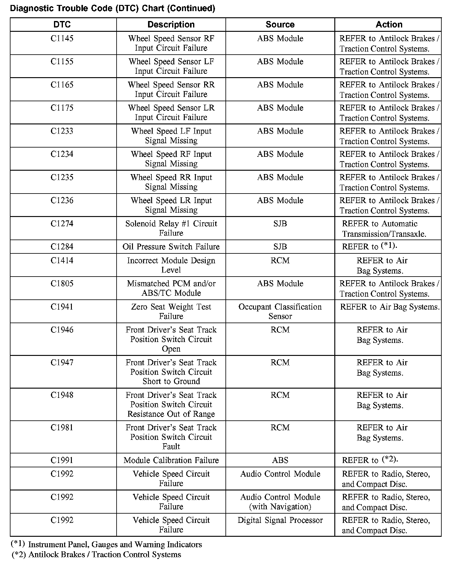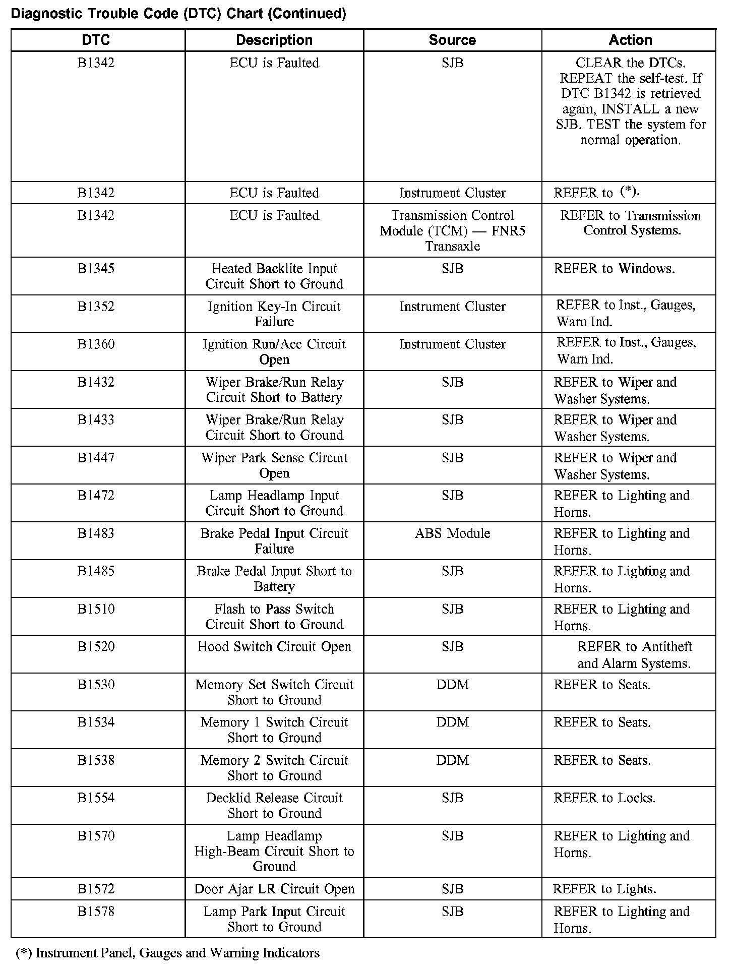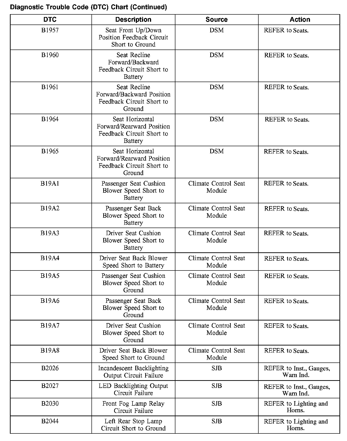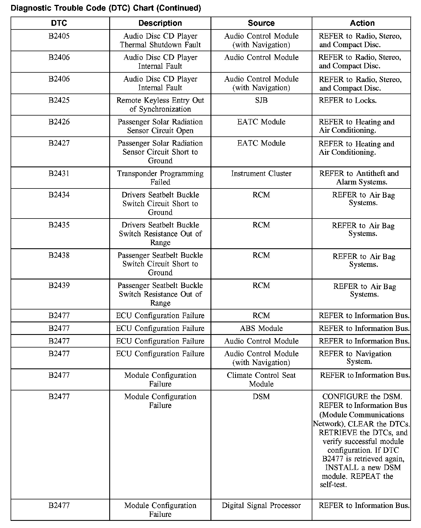DIAGNOSTIC TROUBLE CODE (DTC) CHARTB1003-B1156: