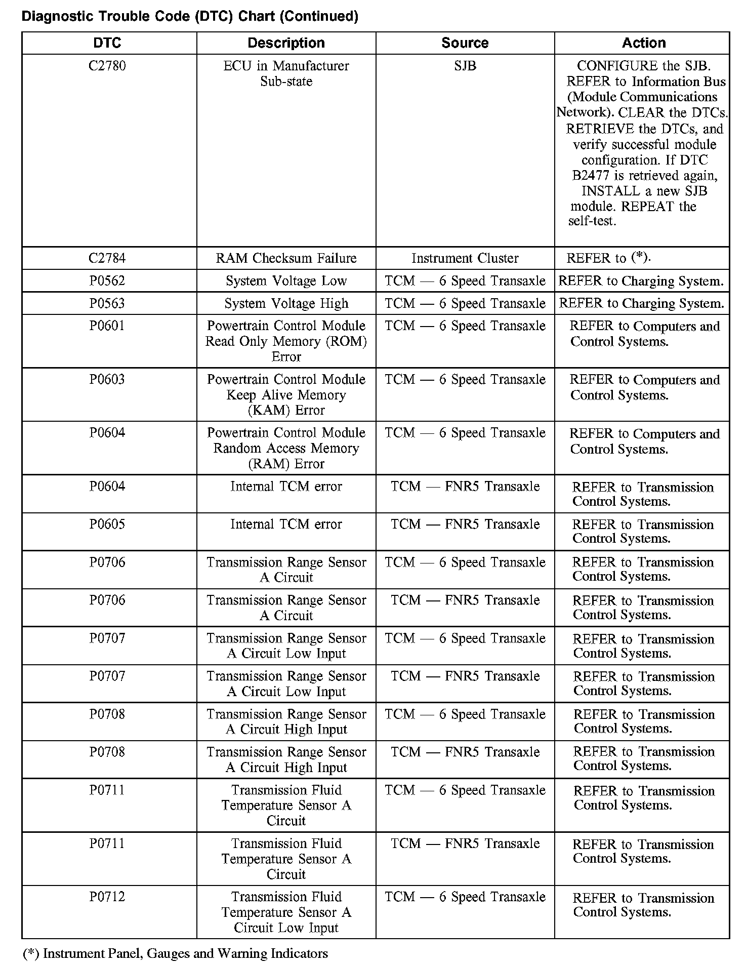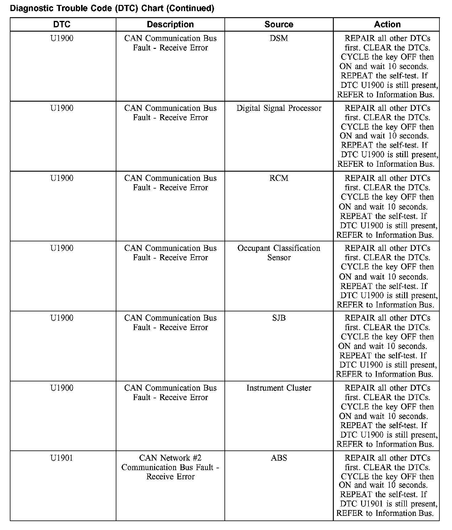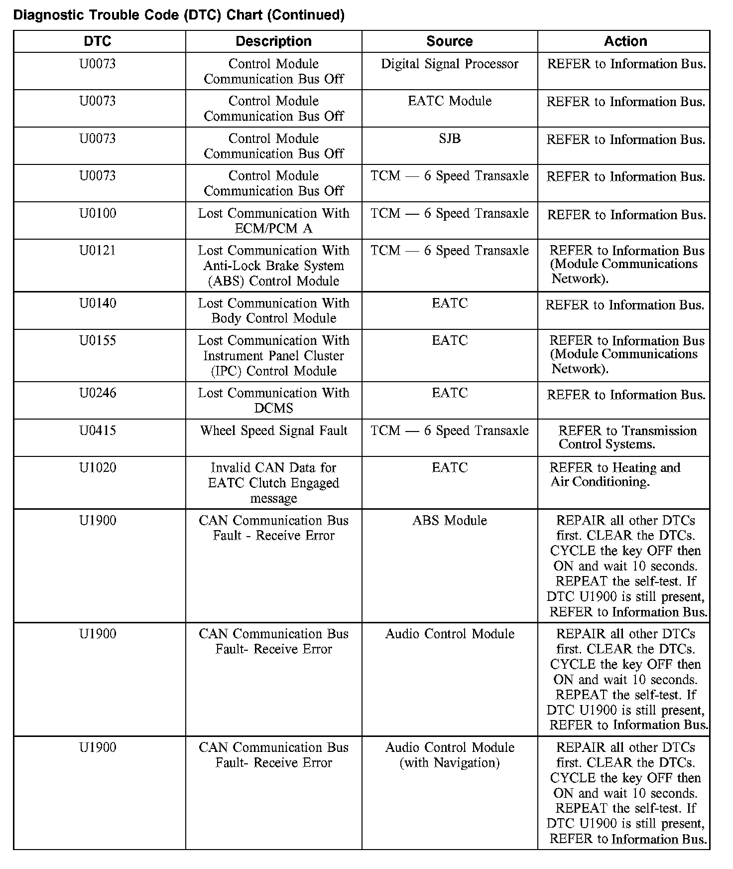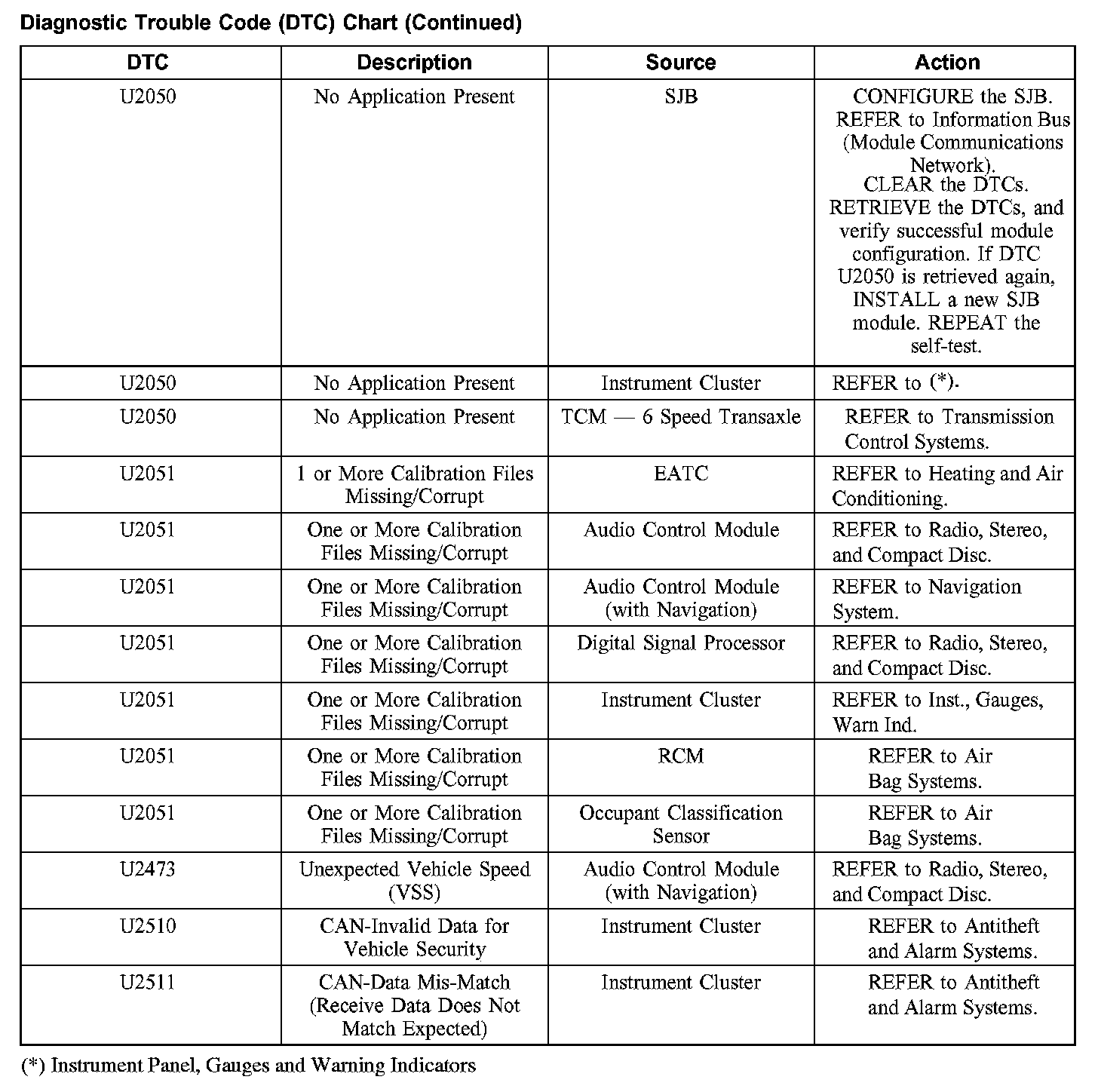 DIAGNOSTIC TROUBLE CODE (DTC) CHARTB1003-B1156: