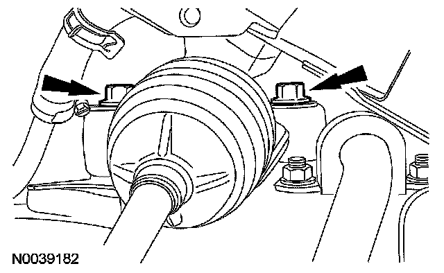 15. CAUTION: When the lower ball joint is separated from the wheel knuckle, the lower arm may strike the outer constant velocity (CV) joint boot with enough force to damage the boot clamp. This will result in a loss of grease from the outer CV joint. Place a block of wood, or similar item, between the lower arm and the outer CV joint to prevent the lower arm from striking the outer CV joint.