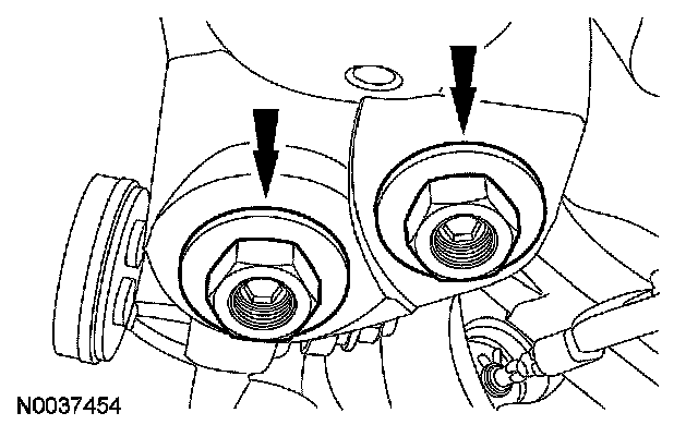 20. Remove the 2 front mounting nuts and washers from the front subframe.