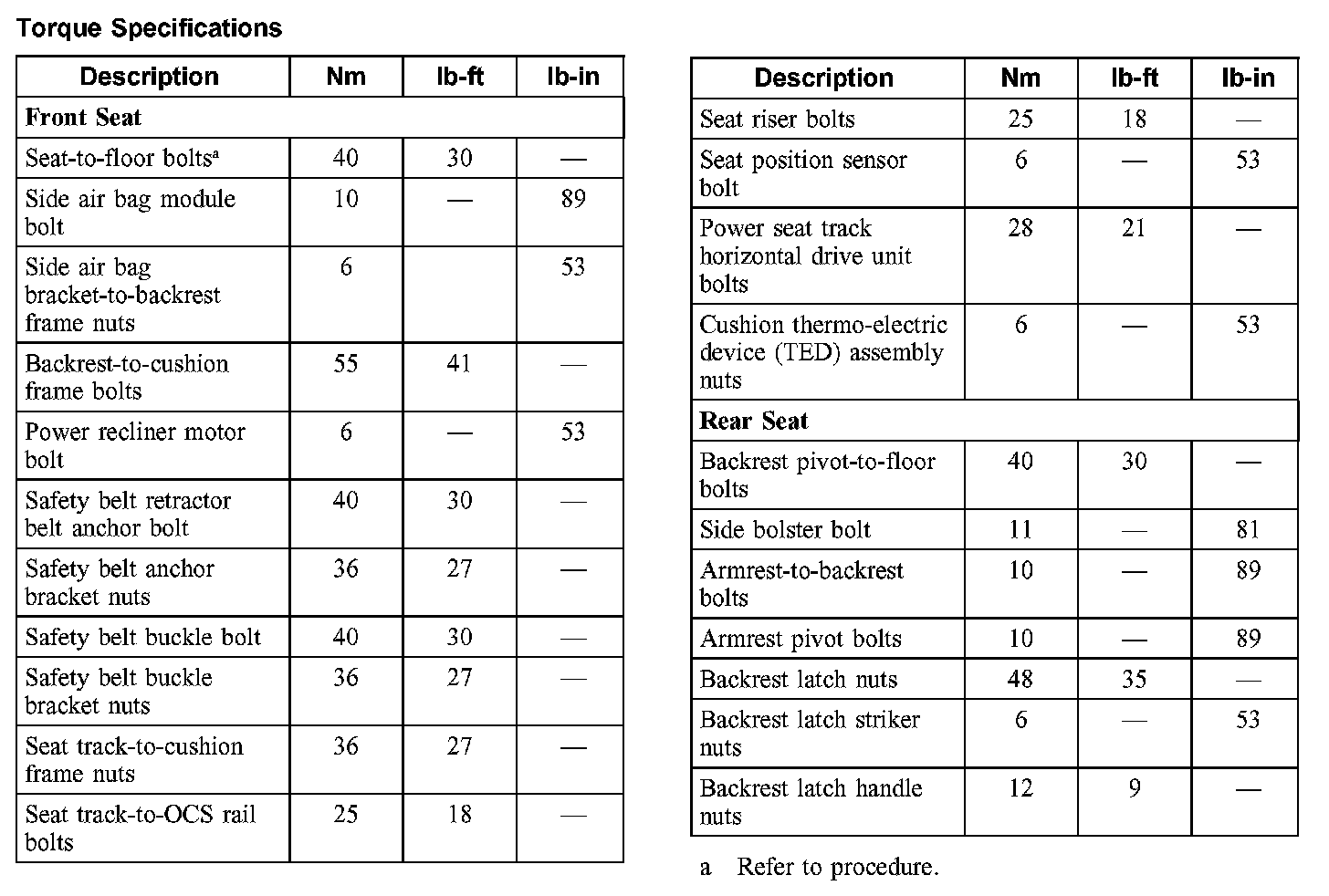 Torque Specifications:
