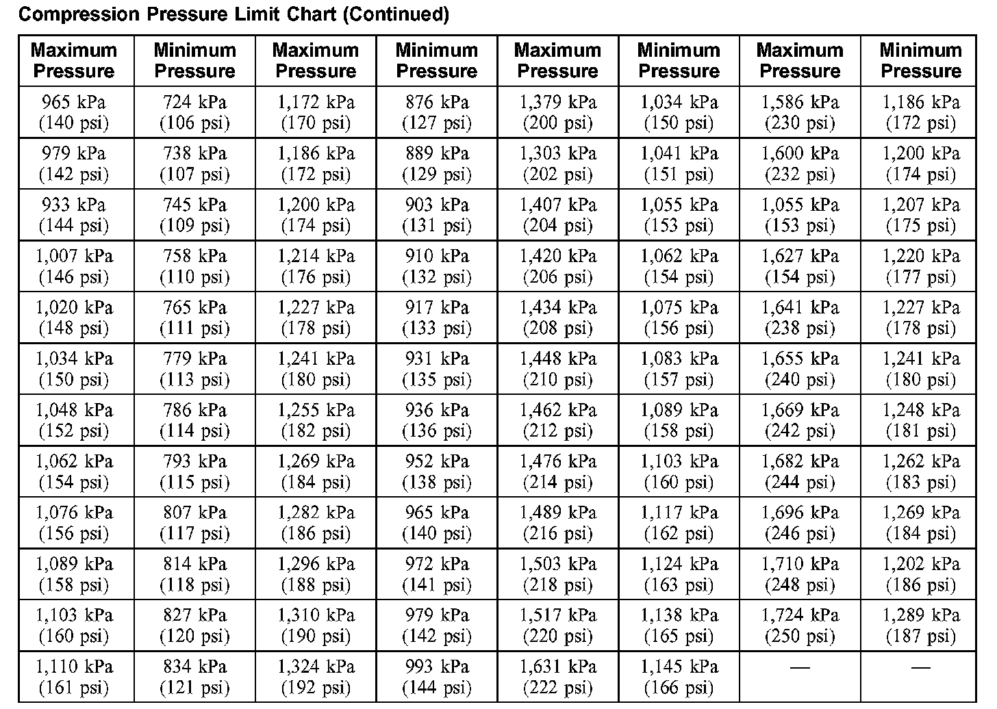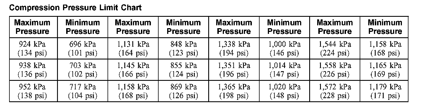 AllData Editors Note - Ford does not provide a cranking pressure specification, only an acceptable range.Compression Pressure Limit Chart