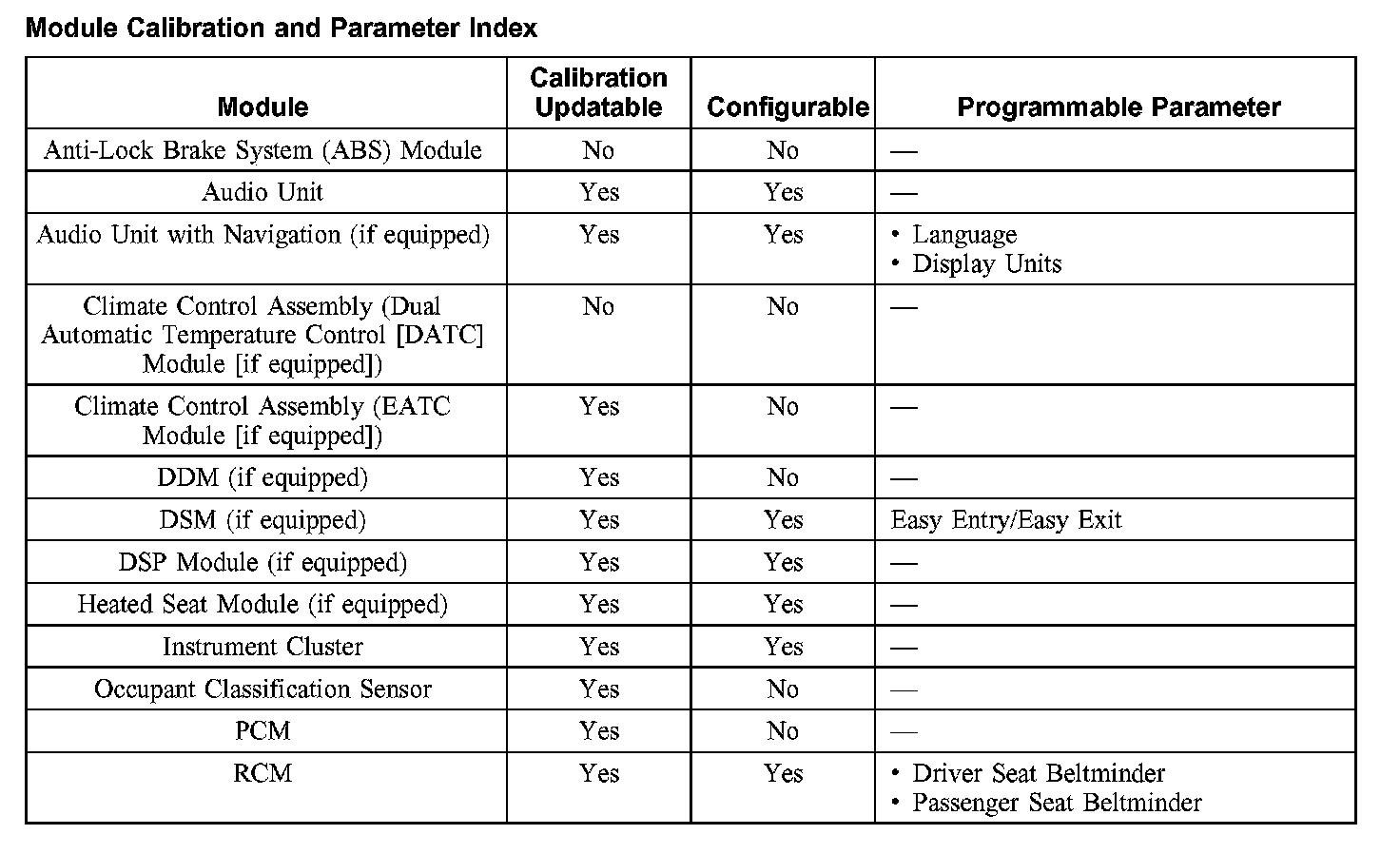 - driver seat module (DSM) (if equipped)