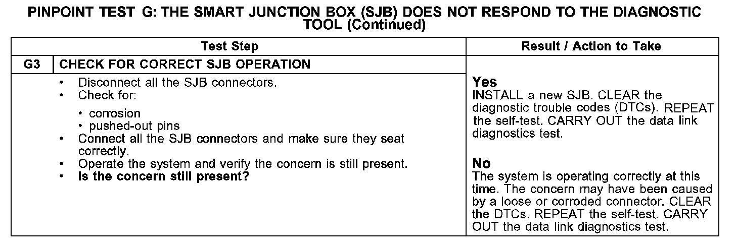 Test G: The Smart Junction Box (SJB) Does Not Respond To The Diagnostic Tool