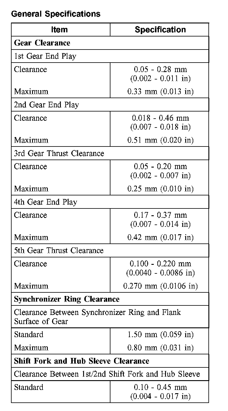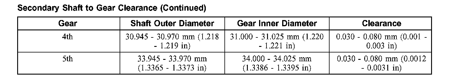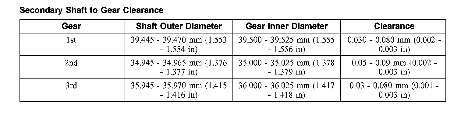 Secondary Shaft to Gear Clearance: