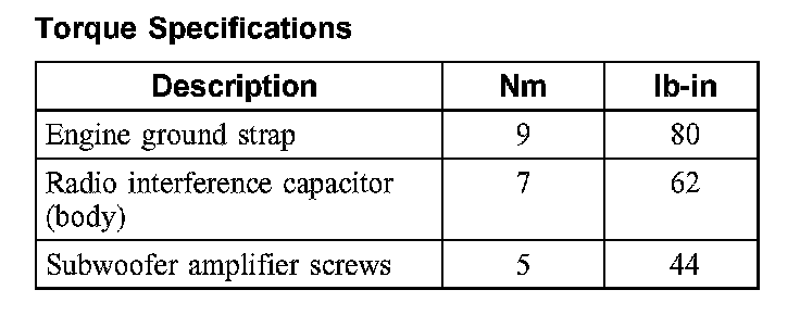 Torque Specifications:
