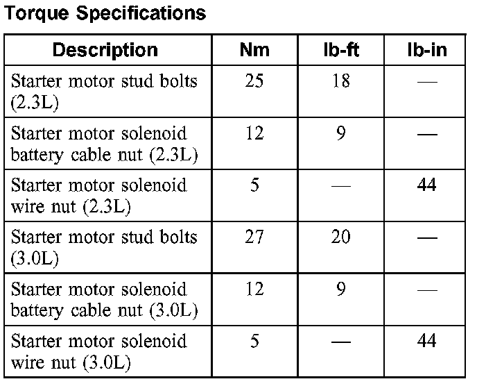 Starter Motor: Specifications