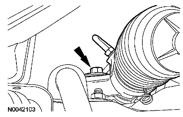 CAUTION: A new bolt and new seals must be installed any time the power steering pressure line is disconnected from the power steering gear.