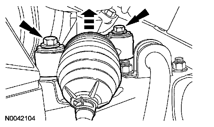 12. Remove RH steering gear-to-subframe bolt.