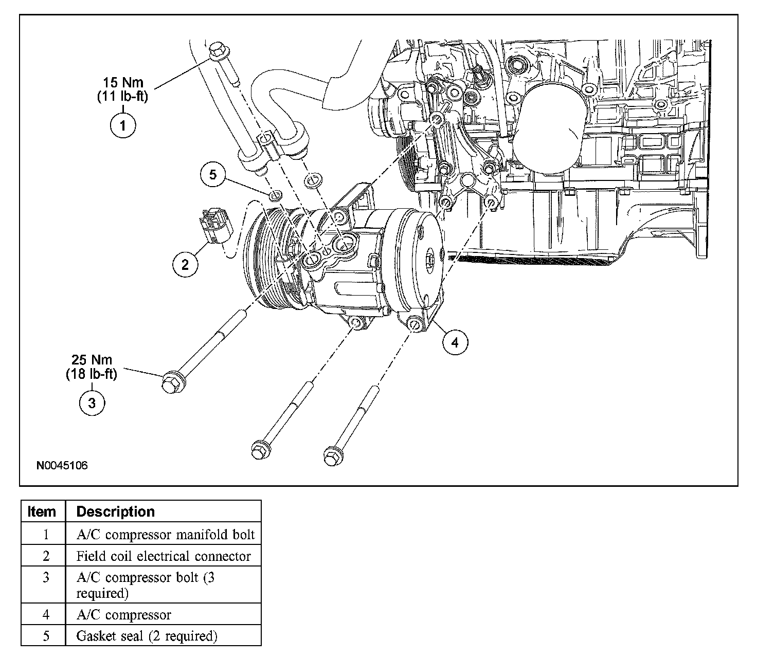 - To install, tighten to 25 Nm (18 lb-ft).