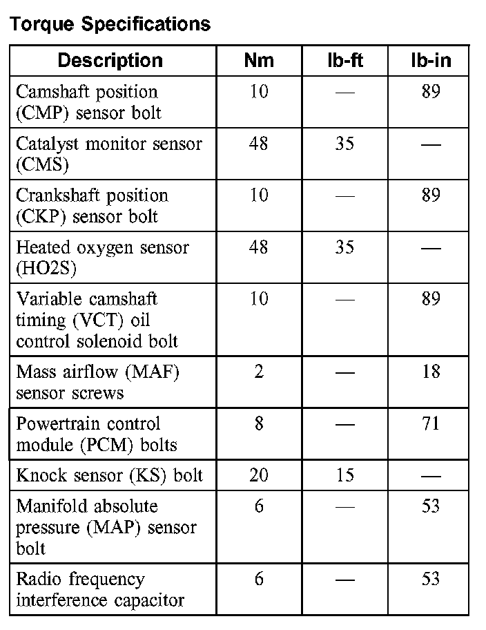 Torque Specifications: