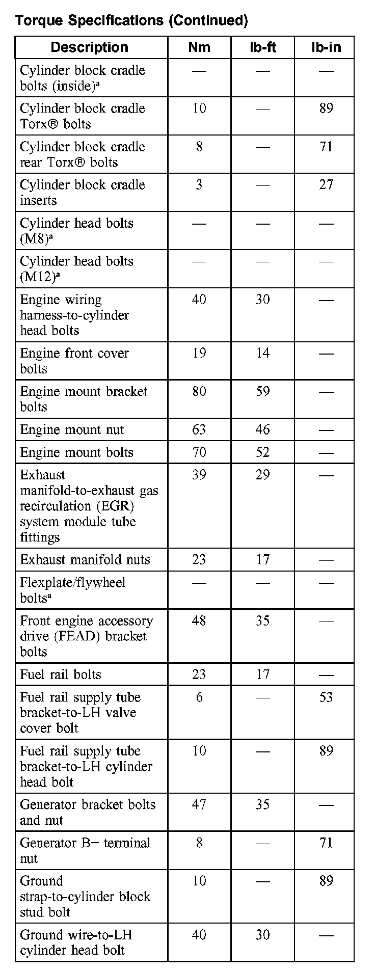Torque Specifications