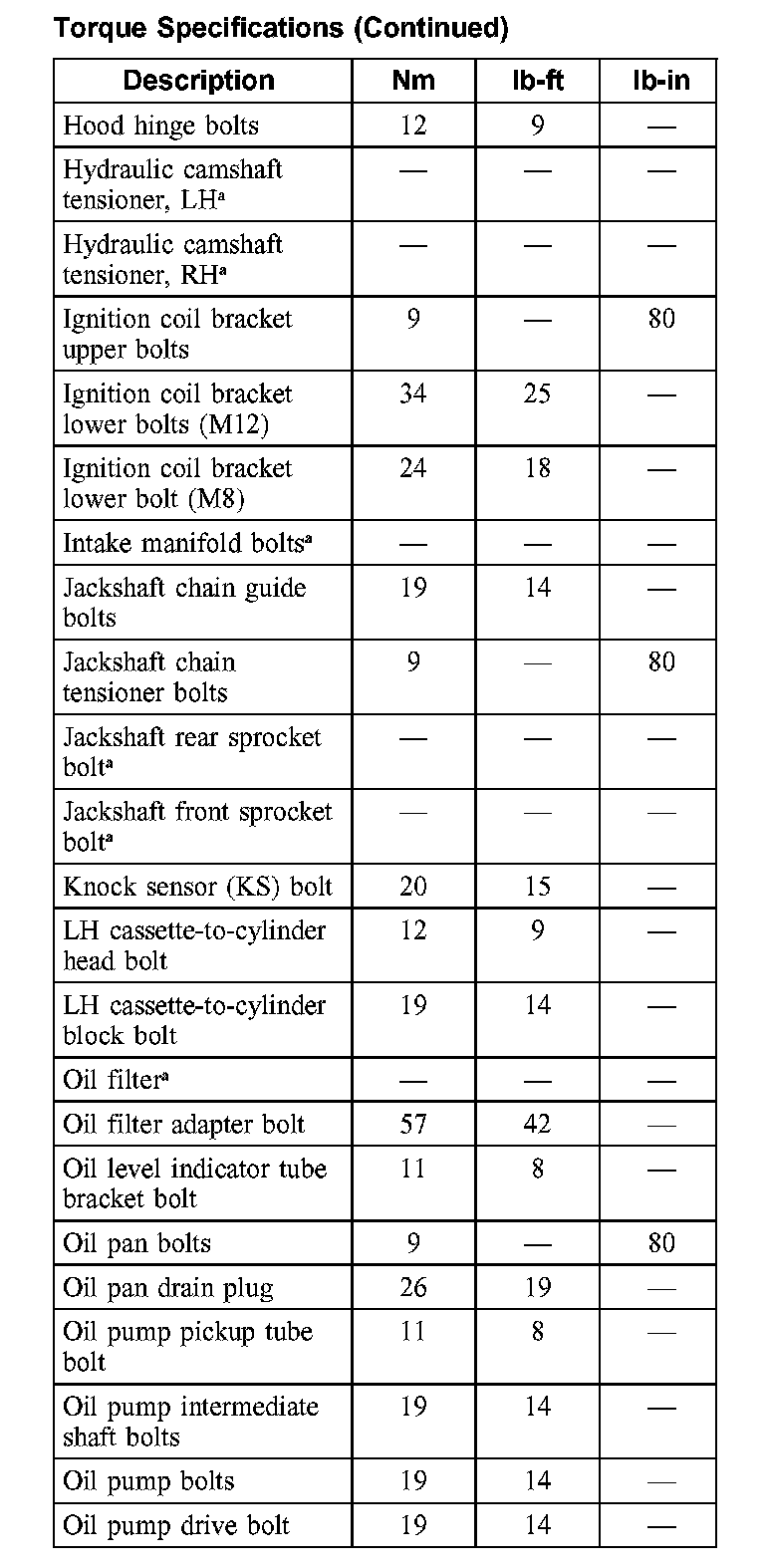 Torque Specifications:
