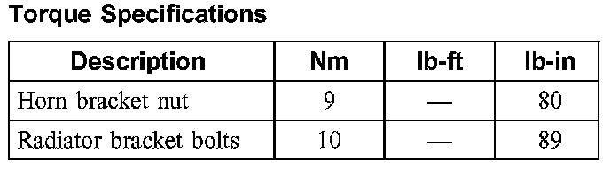 Torque Specifications: