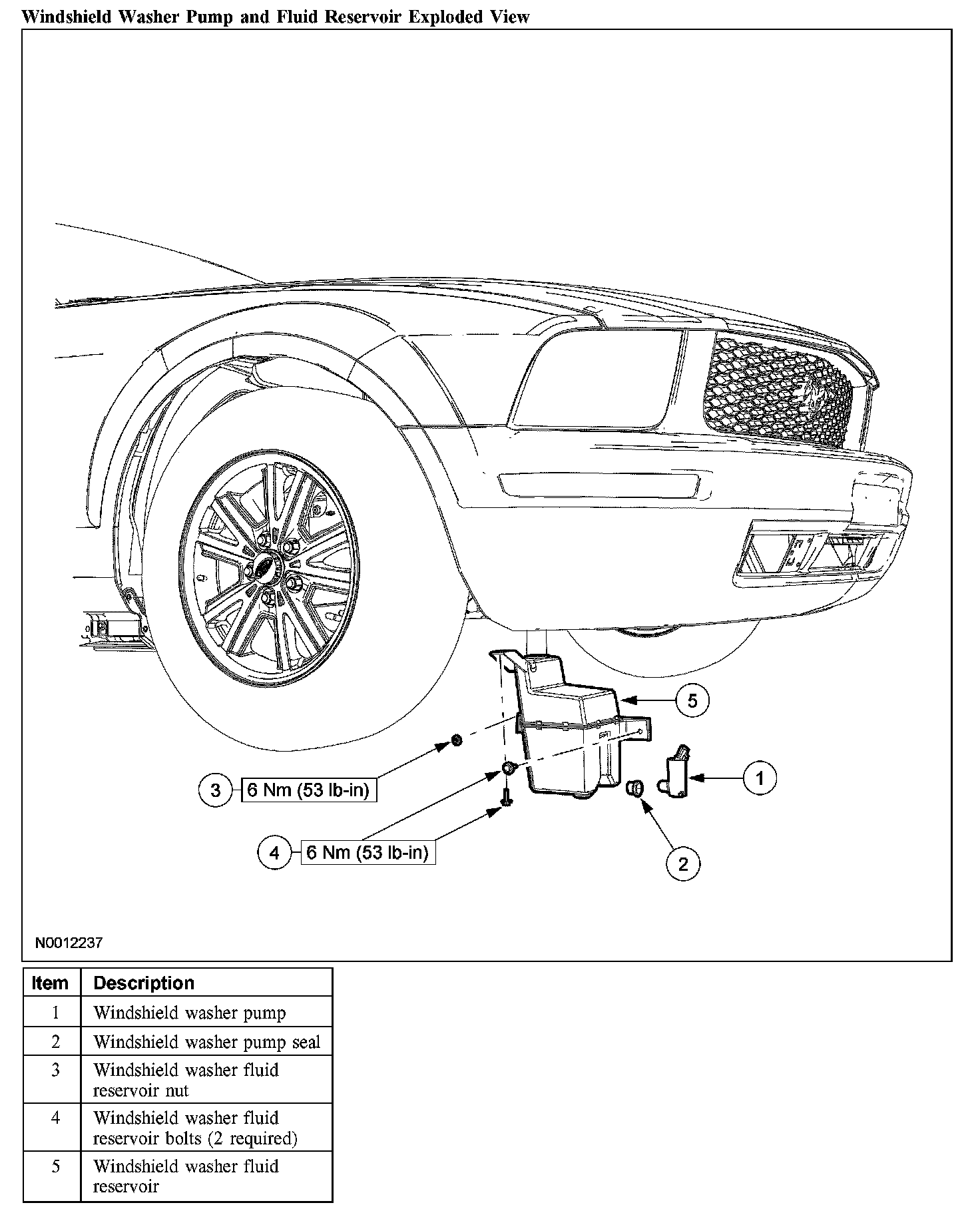 7. CAUTION: Do not operate the windshield washer pump prior to filling the windshield washer reservoir.