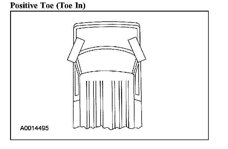 Wheel Alignment AnglesCamber and toe are adjustable on the front suspension systems. Front camber is adjusted through the use of a service repair kit (2B236). Caster is preset at the factory and should only be adjusted, through the use of a service repair kit (2B236), after all other possible sources have been inspected and corrected as necessary. Front toe is adjusted by the use of the front wheel spindle tie rod.