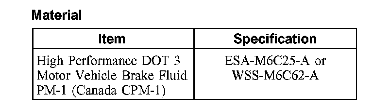 CAUTION: Brake fluid is harmful to painted and plastic surfaces. If brake fluid is spilled onto a painted or plastic surface, immediately wash it with water.