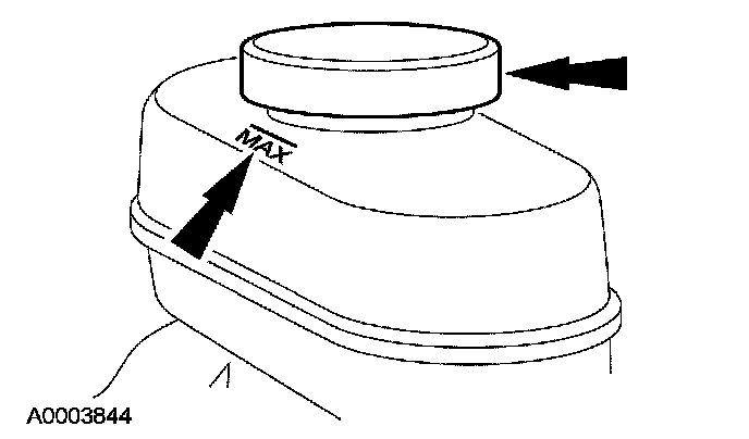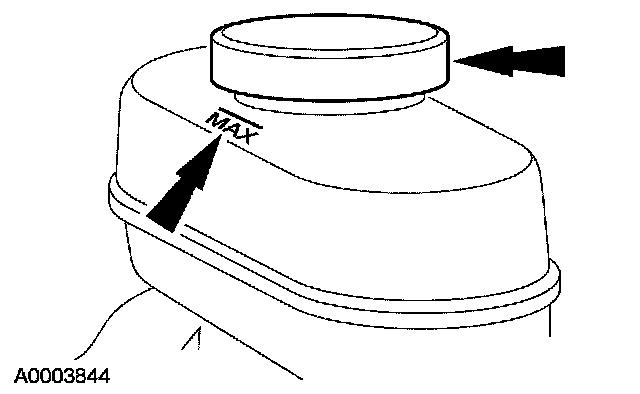 2. Clean all the dirt from the area, remove the brake master cylinder reservoir cap and fill the brake master cylinder reservoir with the specified brake fluid.