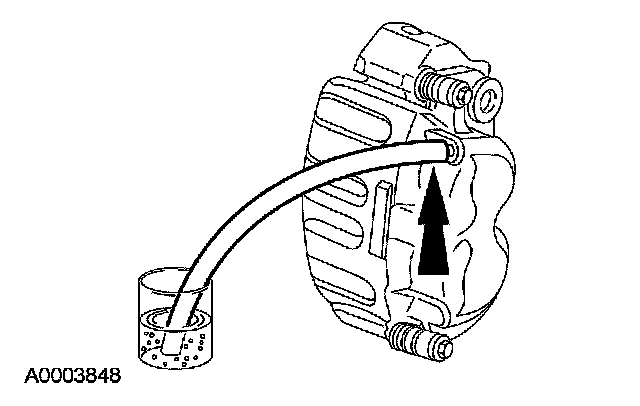 CAUTION: Do not allow the brake master cylinder reservoir to run dry during the bleeding operation. Keep the brake master cylinder reservoir filled with the specified brake fluid. Never reuse the brake fluid that has been drained from the hydraulic system.