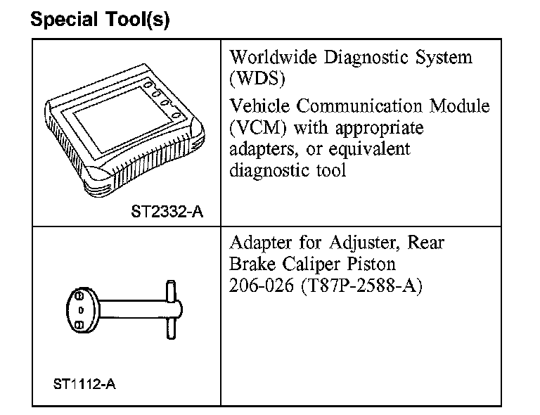 NOTE: Due to the complexity of the fluid path within the rear integral parking brake calipers, it may be necessary to follow this procedure when new calipers are installed.