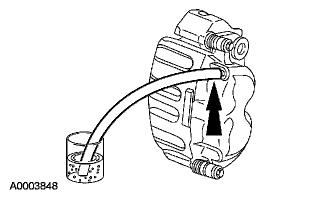 CAUTION: Do not allow the brake master cylinder reservoir to run dry during the bleeding operation. Keep the brake master cylinder reservoir filled with the specified brake fluid. Never reuse the brake fluid that has been drained from the hydraulic system.