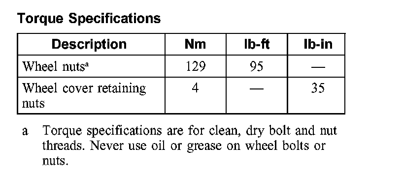 Torque Specifications: