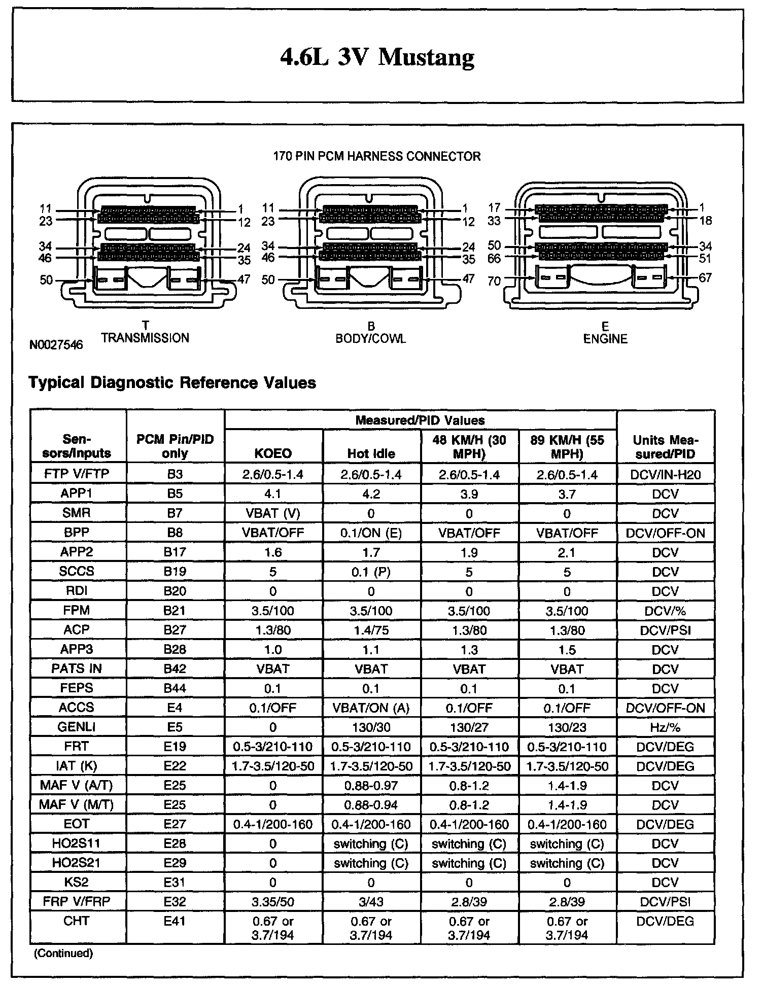 The Typical Diagnostic Reference Value Charts do not display fault parameter identifications (PIDs). These are PIDs which indicate a hard fault with the circuit. They display a value of YES or NO and are PIDs ending with the letter F.